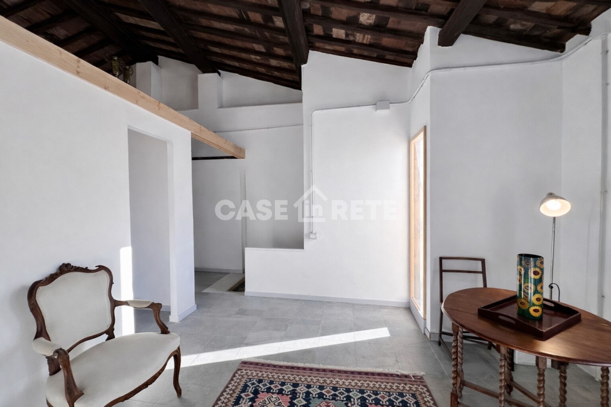 L’immobile, completamente ristrutturato, si sviluppa su circa 60 mq ed è caratterizzato da ambienti accoglienti e ricchi di personalità. Il tetto con travi a vista e i particolari architettonici originali donano calore e unicità agli spazi, creando un’atmosfera suggestiva e raffinata. La zona giorno è luminosa e ben distribuita, il cucinotto è funzionale e riservato, mentre la camera da letto garantisce comfort e tranquillità. Completa la proprietà un bagno finestrato e un delizioso terrazzino, perfetto per concedersi un momento di relax sopra i tetti del centro storico.